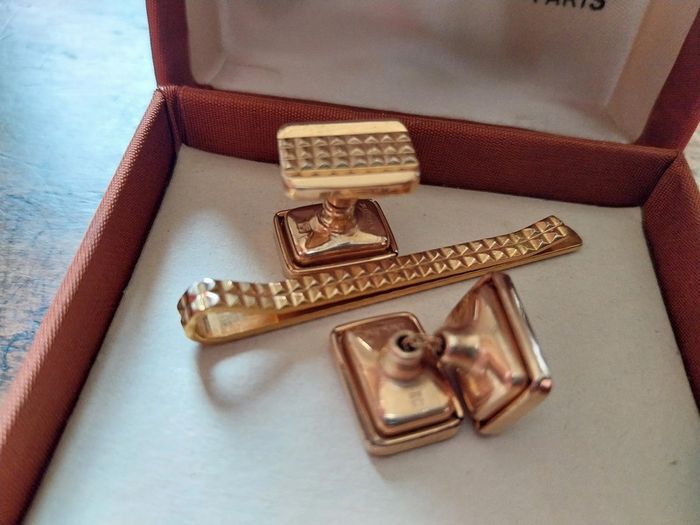 Boutons de manchettes extensible, agrafe de cravate MURAT plaqué or mode vintage - photo numéro 1