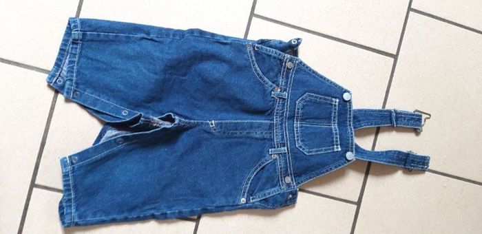 Salopette bébé en jean avec pression entre les jambes pour un enfilage plus facile