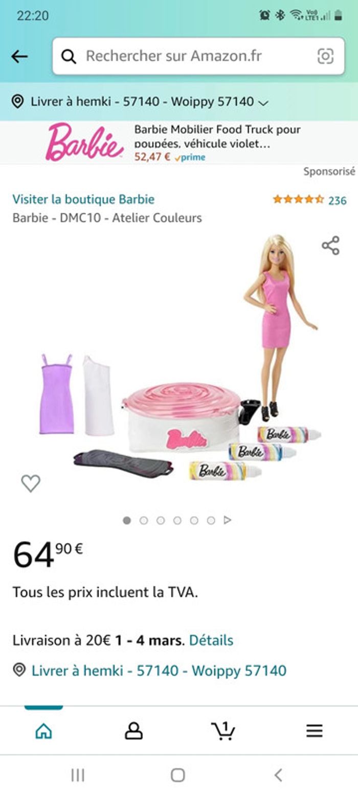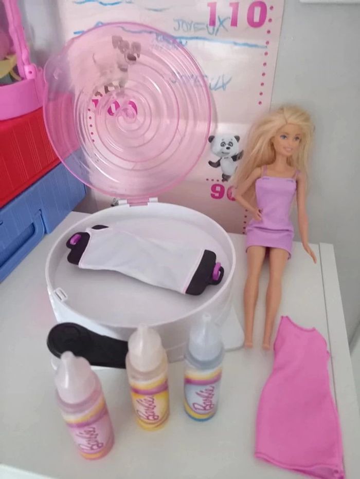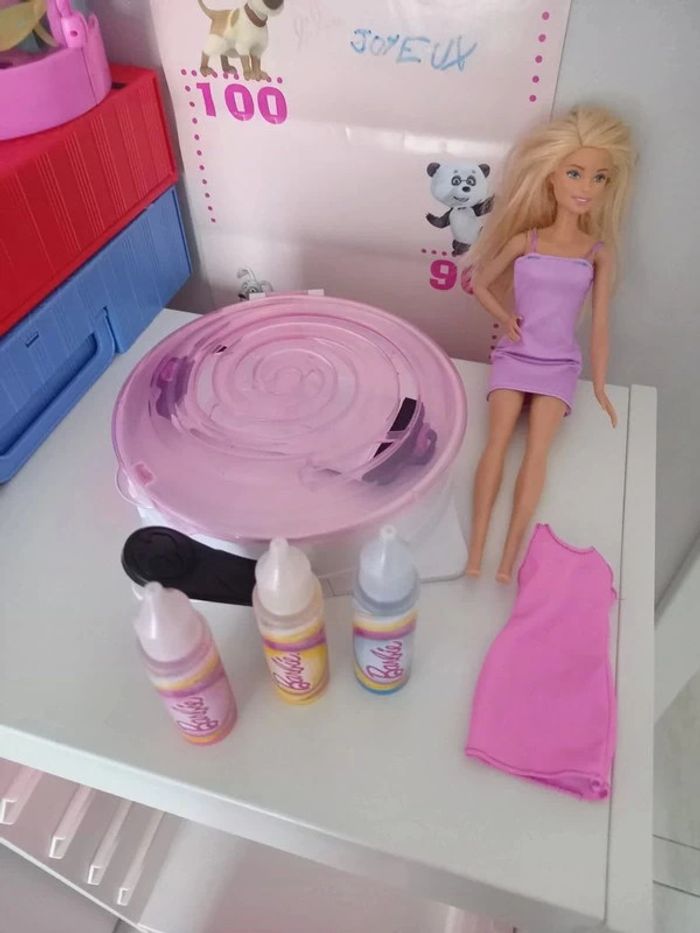 Atelier couleurs barbie permet de coloré les robes de barbie ce rince simplement à l'eau pour recommencer autant de fois que l'on veut utilisé mais très peut très bon état
