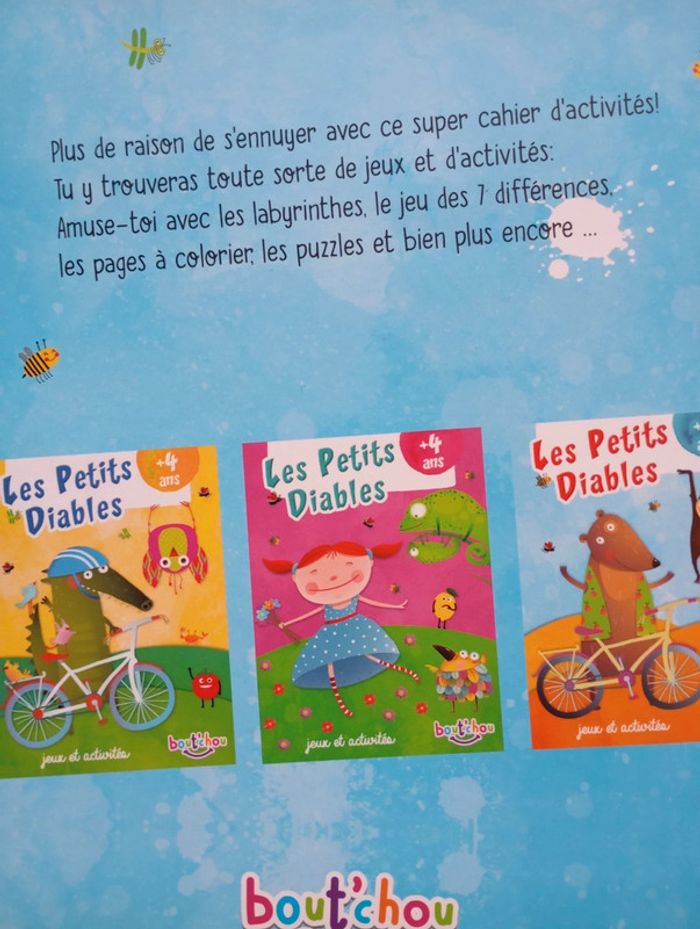 La collection Les Petits Diables éditée chez Bout’chou est accessible aux enfants à partir de 4 ans. A travers cette collection vos enfants découvriront une gamme de jeux ludiques : mosaïques, labyrinthes, dessins à colorier pour des heures de plaisirs et d’amusements ! La collection Les Petits Diables est adaptée au développement personnel de vos enfants. Celle-ci réunit tous les goûts, les préférences de vos enfants pour des moments de pur plaisir. Elle est idéale pour entrainer vos enfants. Avec la collection Les Petits Diables, vos enfants n’auront plus de raison de s’ennuyer avec ces super livres d’activités ! Editeur : Boutchou Âge : +4 ans Dimensions : 21 x 29 cm Livre en très bon état (un coin corné de la couverture) Je vends d'autres livres d'activités #phil_peg_cahierdactivité #cahierdactivités #jeux #labyrinthe #origami #coloriage