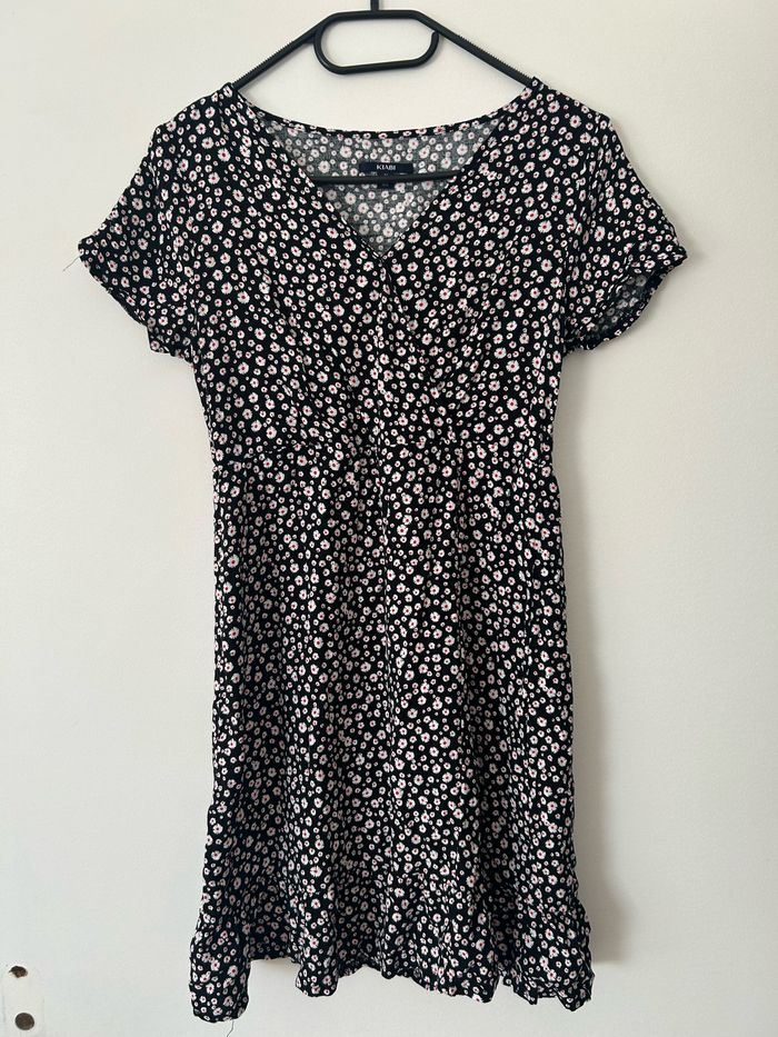 Robe Kiabi noire à fleurs Manches courtes Taille 32 En très bon état