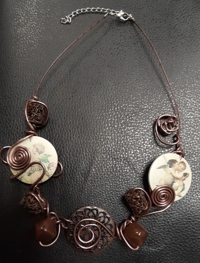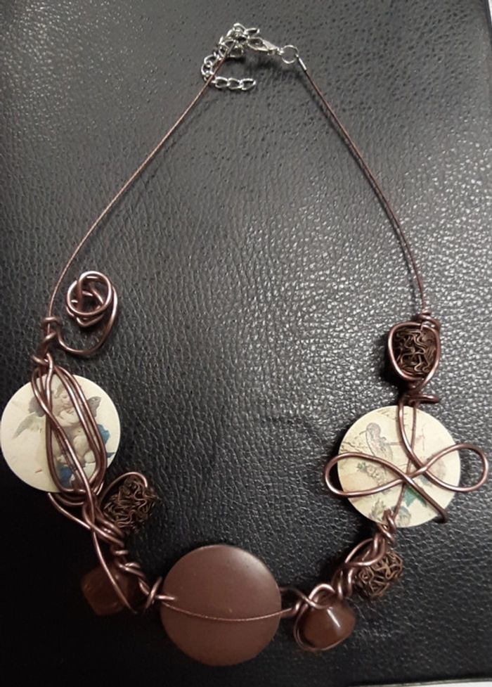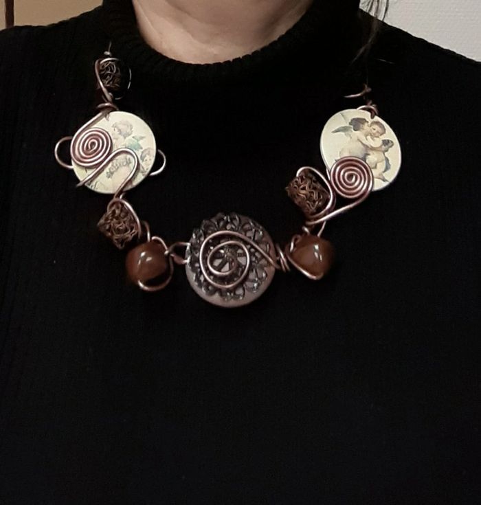 Beau collier plastron vintage artisanal couleur cuivre - photo numéro 2