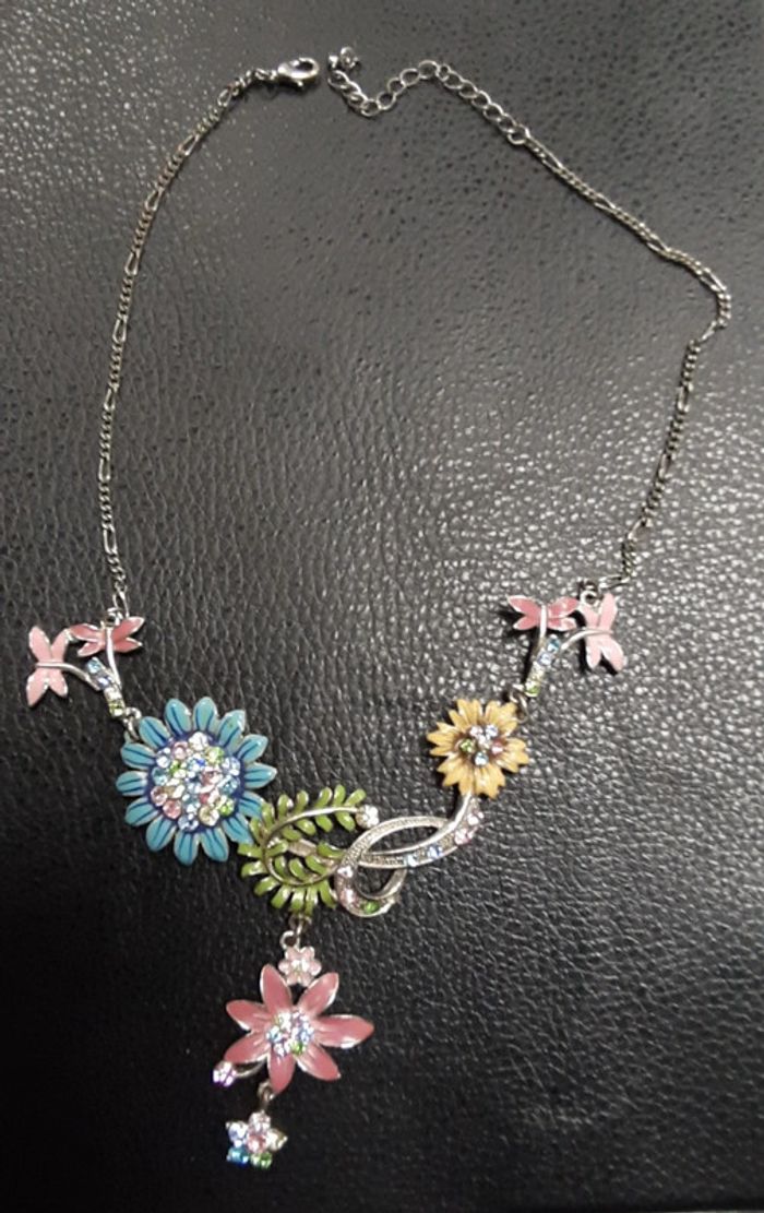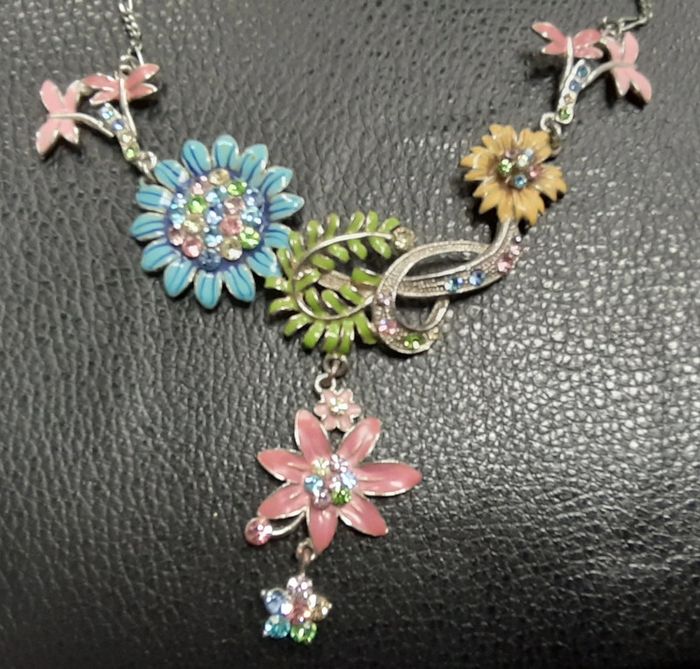 Très joli collier plastron avec fleurs, strass et papillons - photo numéro 3