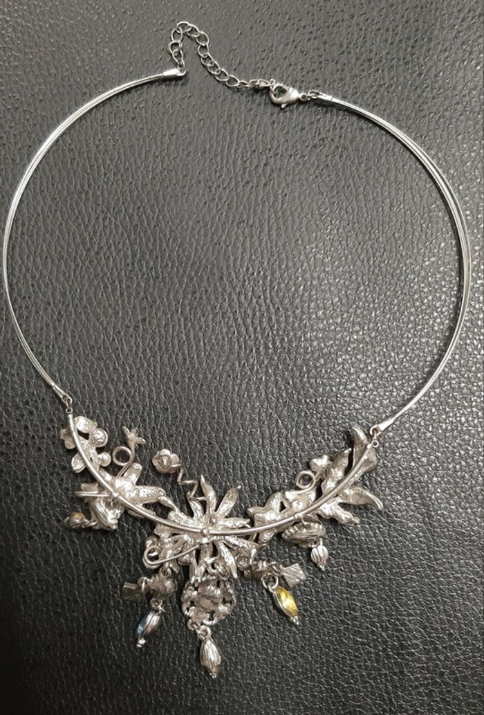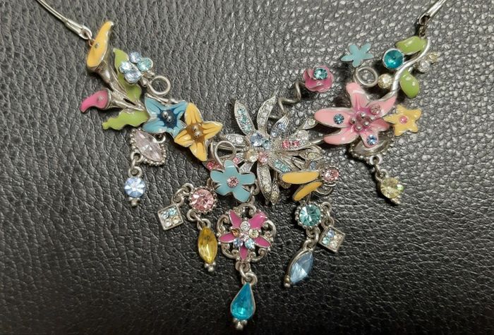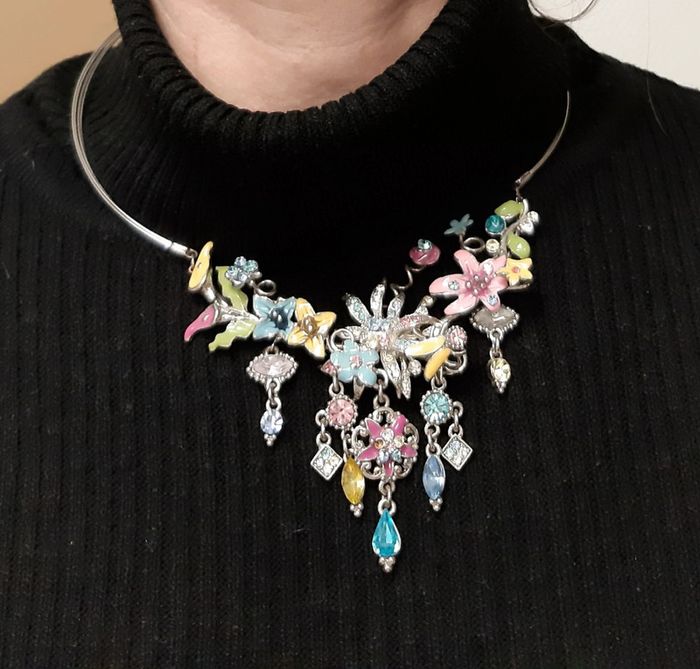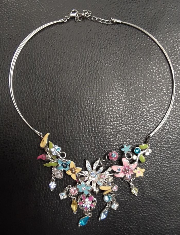 Très joli collier plastron fleurs, strass et breloques - photo numéro 1