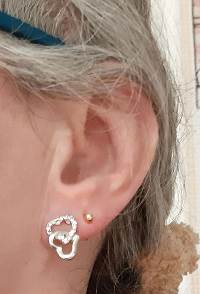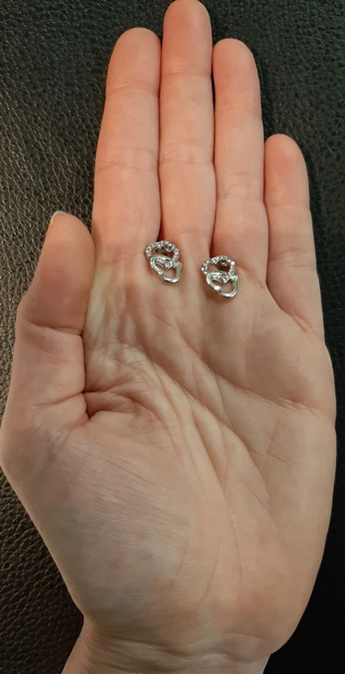 Très jolies boucles d'oreilles coeurs en strass et acier inoxydable - photo numéro 5