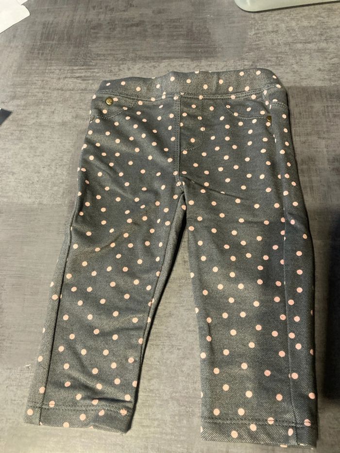 Vends pantalon gris à pois rose en très bon état. 12 mois