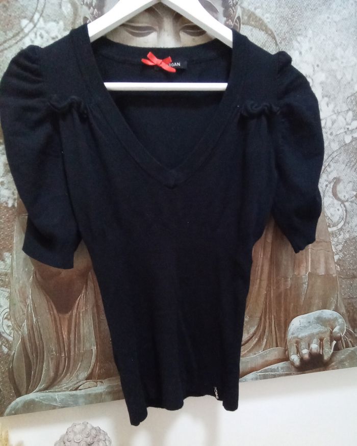 Tee shirt en laine noire manches courtes Morgan taille 36