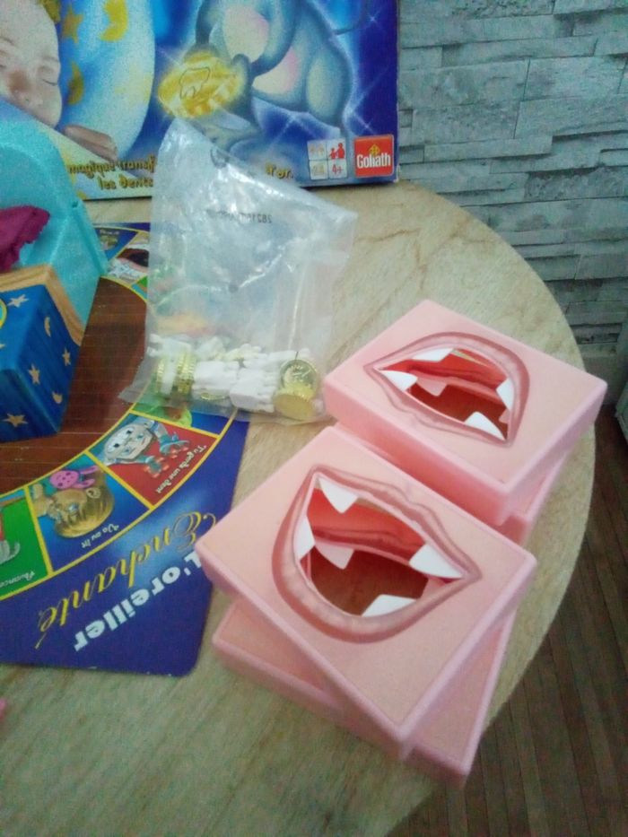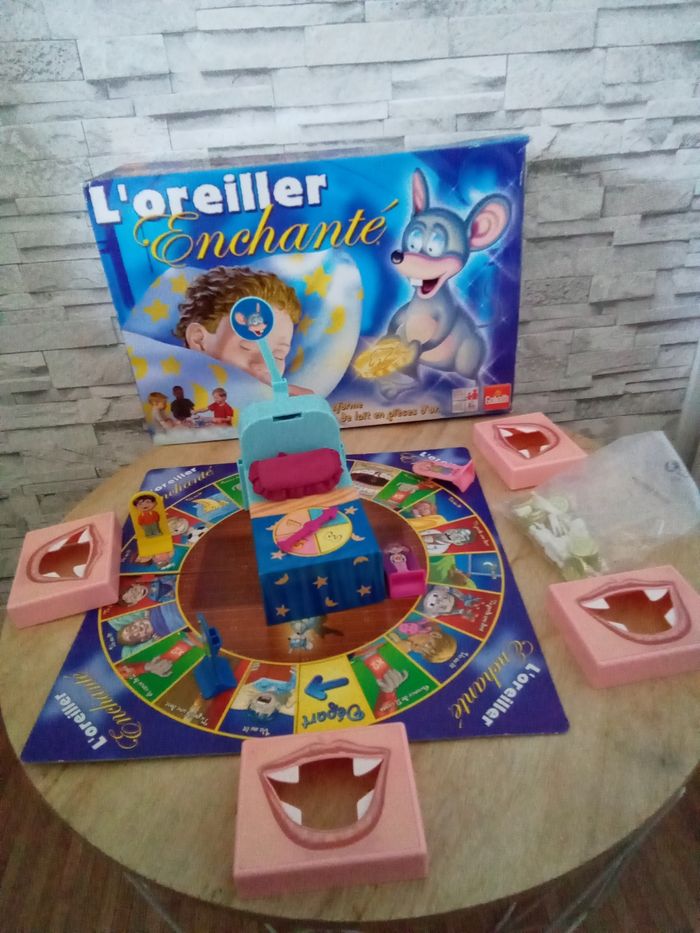 🎭 Jeu L'oreiller Enchanté de Goliath 🎭 Le lit magique transforme tes dents de lait en pièces d'or 🎭 Pour 2 à 4 joueurs à partir de 4 ans et + 🎭 Jeu complet, boîte abîmée par endroits