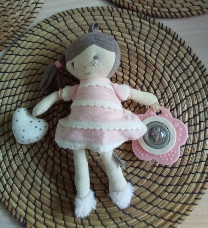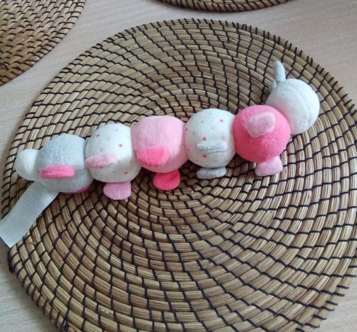 Lot jeux éducatifs 1er âge : poupée, chenille grelot, anneau dentition - photo numéro 8