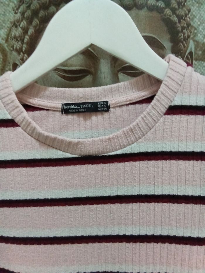Pull rose léger avec rayures Bershka taille S - photo numéro 3
