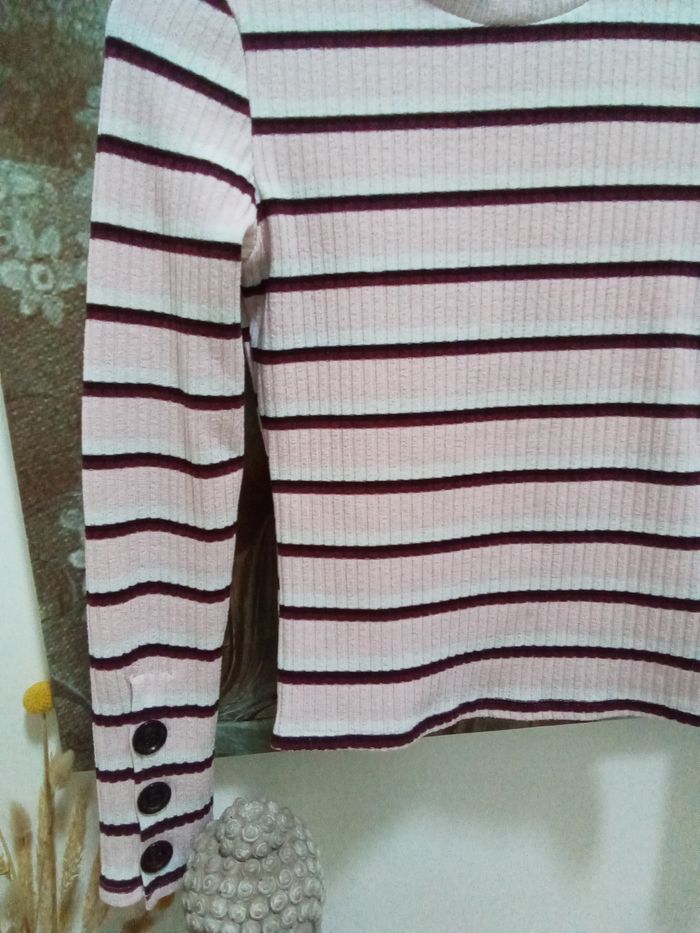 Pull rose léger avec rayures Bershka taille S - photo numéro 4