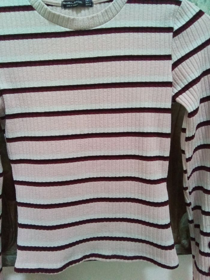 Pull rose léger avec rayures Bershka taille S - photo numéro 1