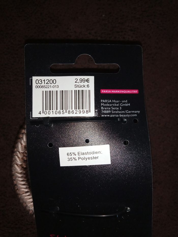 Ensemble de 6 élastiques "Parsa" 3 vert, blanc et noir et 3 beige, marron et bleu marine Élastiques de taille normale Prix: 1,30€ (valeur 2,99€)