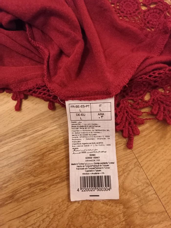 Joli débardeur avec motifs franges sur le bas, Rouge bordeaux, Très bon état