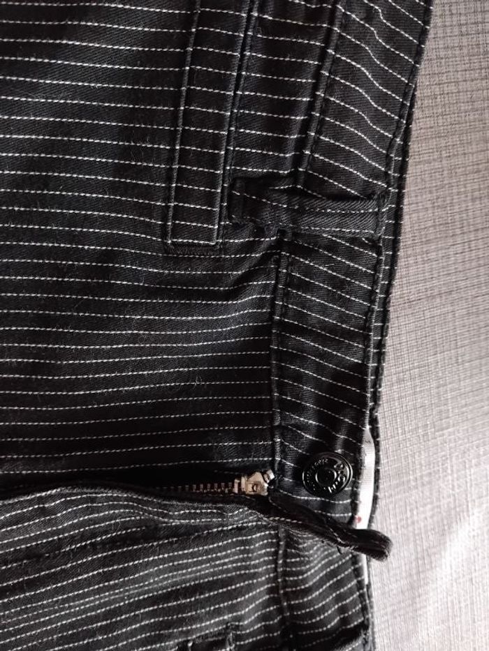 Pantalon droit stretch extensible Taille 40 Achat Jennifer Excellent état Matière stretch Noir fines rayures blanches Taille bien