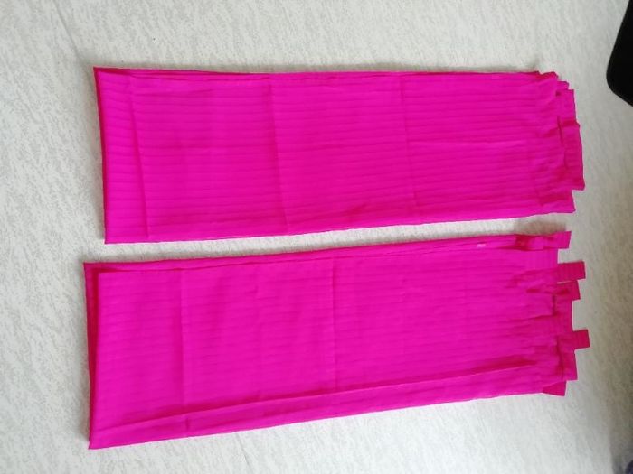 2 Grands voilage FUSHIA Voile a patte Effet un peu transparent a rayures Excellent état Chaque rideau mesure 140 de large 232 haut ( 1 ourlet à été fait par une couturière sans être coupé le plomb est toujours en bas) Ils sont magnifiques Belle couleur Fushia mais pas flashi comme la photo pourtant prise sans flash