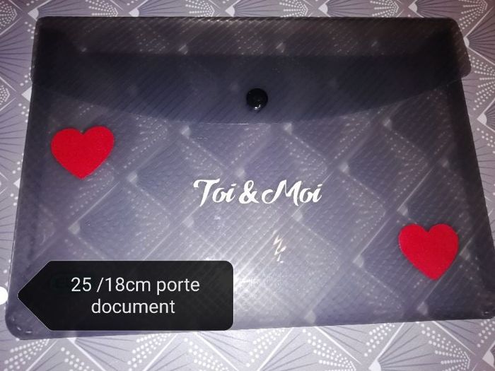 Pochette porte document 📄 Neuve Que j'ai Customisée Se ferme avec une pression 25 cm de large sur 18cm de haut mesure fermée Couleur gris très foncé tire sur le noir