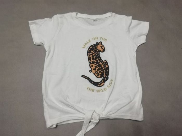 Très joli tee shirt a nouer Écru dessin devant lettre couleur or NEUF JAMAIS PORTÉ Taille 10/12 ans