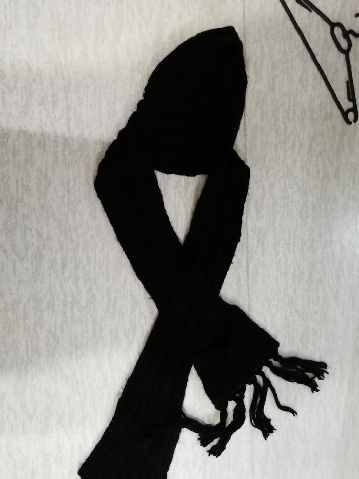 Un 3. EN. 1 bien pratique Très long Noir en laine La grande écharpe à des poches en bas qui font office de Gants La capuche de bonnet Convient adulte