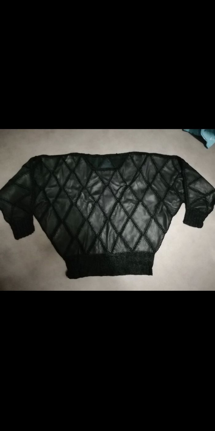 Pull cuir manches chauve souris Noir Le bas du pull, le bout des manches et entre les losanges de cuir une petite laine un peu satiné Taille unique 36/42 pas ➕