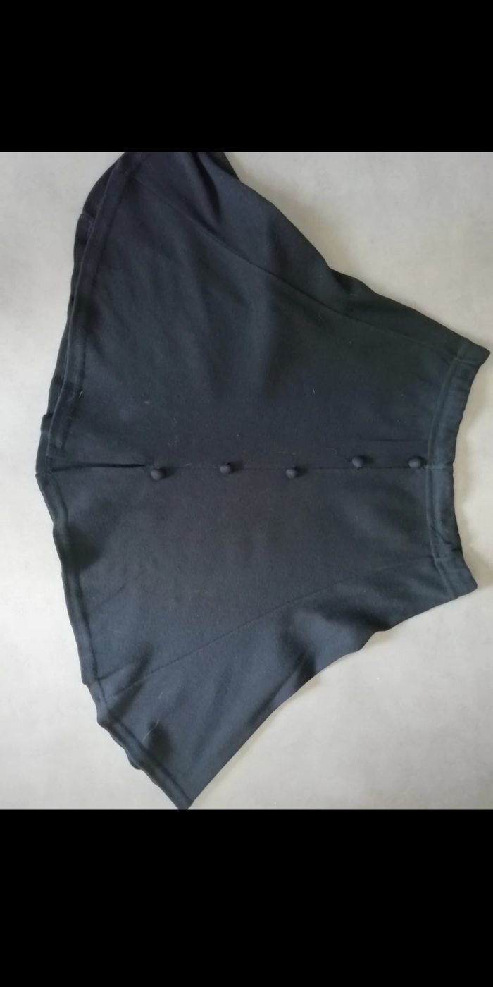 Jolie mini jupe noire Forme trapèze Taille S 36 Élastique à la taille Petite fente devant Bouton factice matière extensible TBE