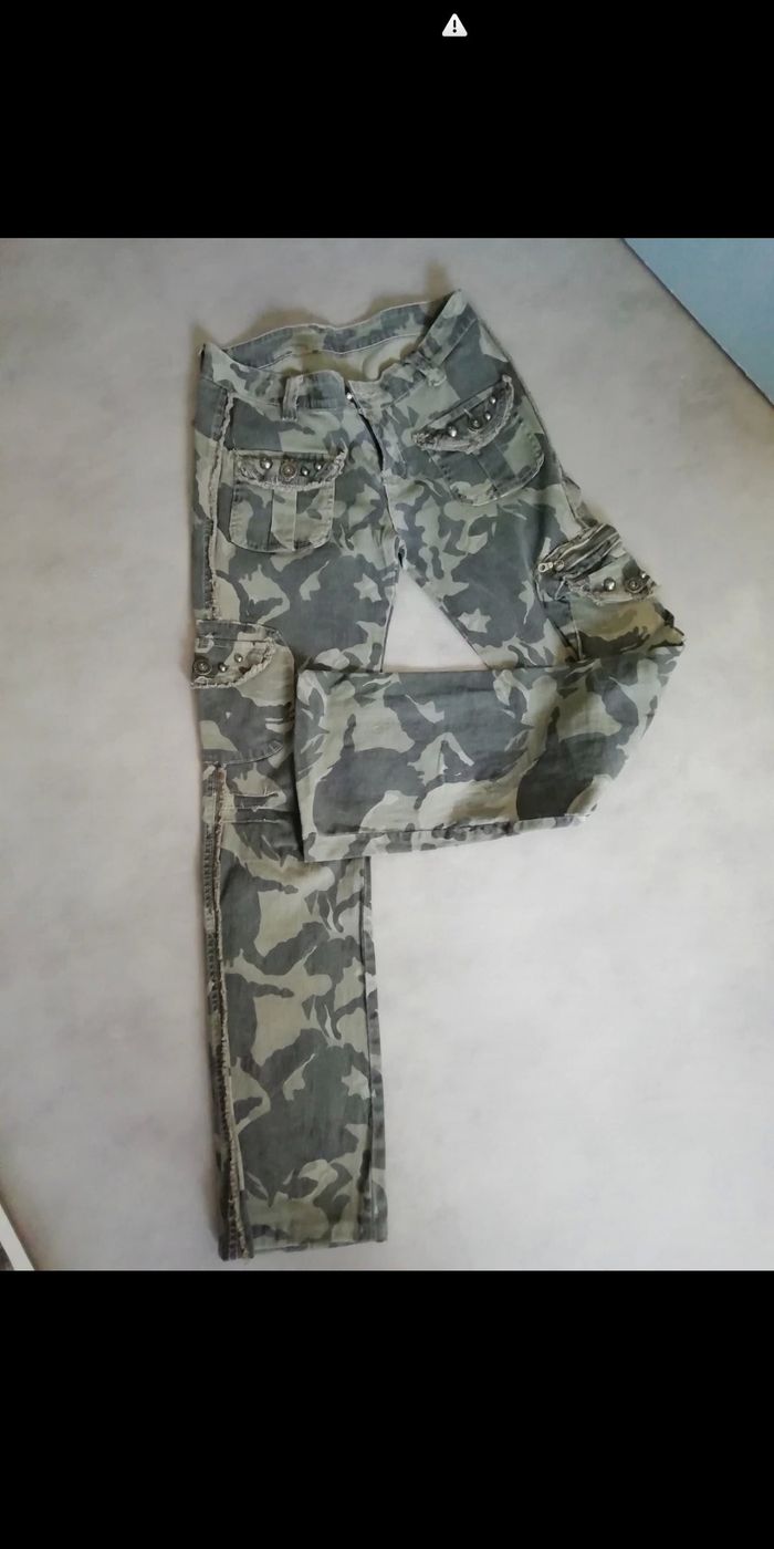 Pantalon femme Camouflage kaki Très extensible Taille 36 Tbe Multi poches Poches sur jambes Très stylé