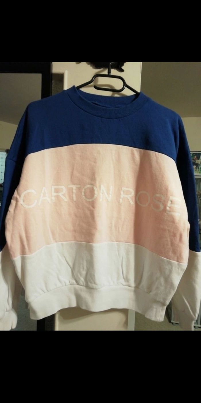 Sweat oversize. Tout doux Marine /blanc /saumon Excellent état quasi neuf mis 1 fois Taille S MAIS TAILLE LARGE CONVIENT À DU M également CARTON ROSE