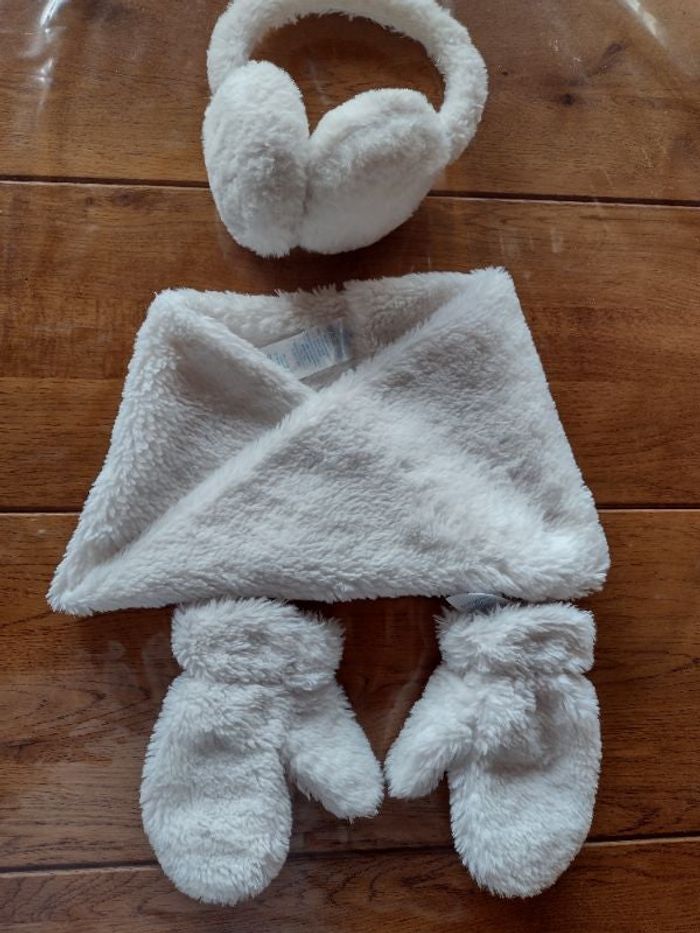Un cache oreille, un tour de cou très doux et des gants Taille5/8 ans