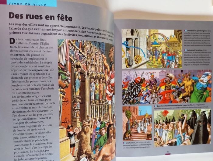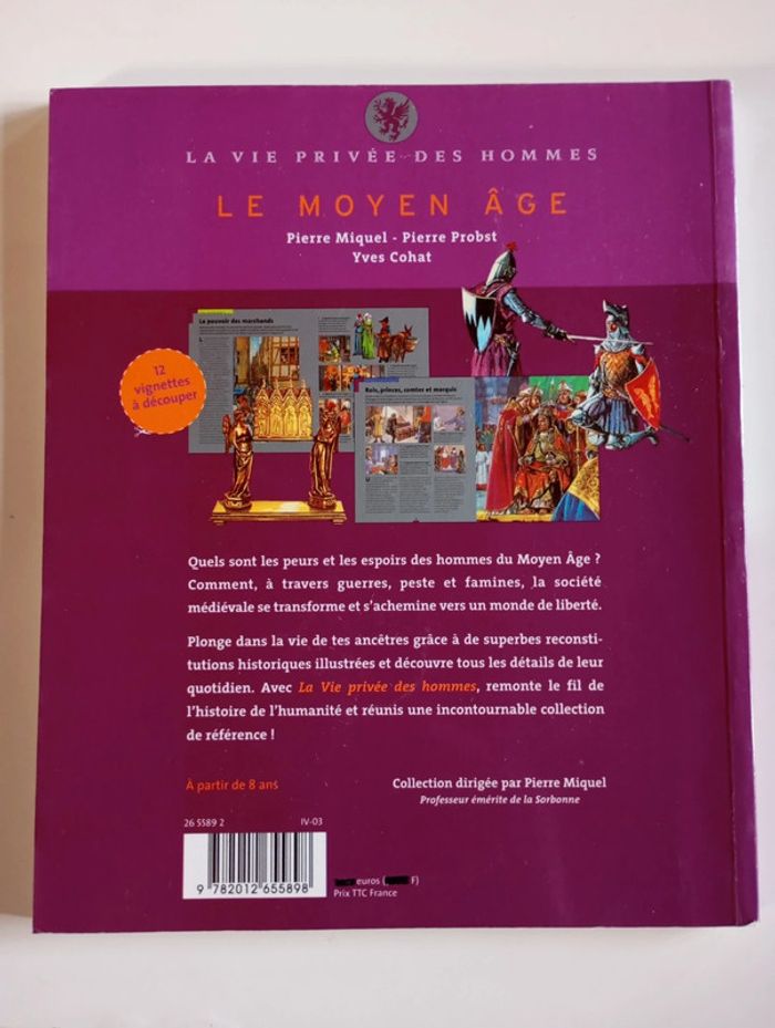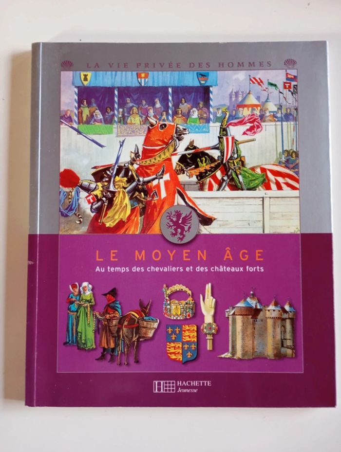 Quels sont les peurs et les espoirs des hommes du Moyen Âge ? Comment, à travers guerres, peste et famines, la société médiévale se transforme et s'achemine vers un monde de liberté. Plonge dans la vie de tes ancêtres grâce à de superbes reconstitutions historiques illustrées et découvre tous les détails de leur quotidien. Avec La vie privée des hommes, remonte le fil de l'histoire de l'humanité et réunis une incontournable collection de référence ! Éditeur ‏ : ‎ Hachette Jeunesse 62 pages Âge de lecture ‏ : ‎ 6 - 10 ans Dimensions ‏ : ‎ 19.5 x 0.9 x 23.5 cm Livre en très bon état Je vends d'autres livres sur le moyen-âge #phil_peg_moyenâge #moyenage #chevalier #chateauxforts