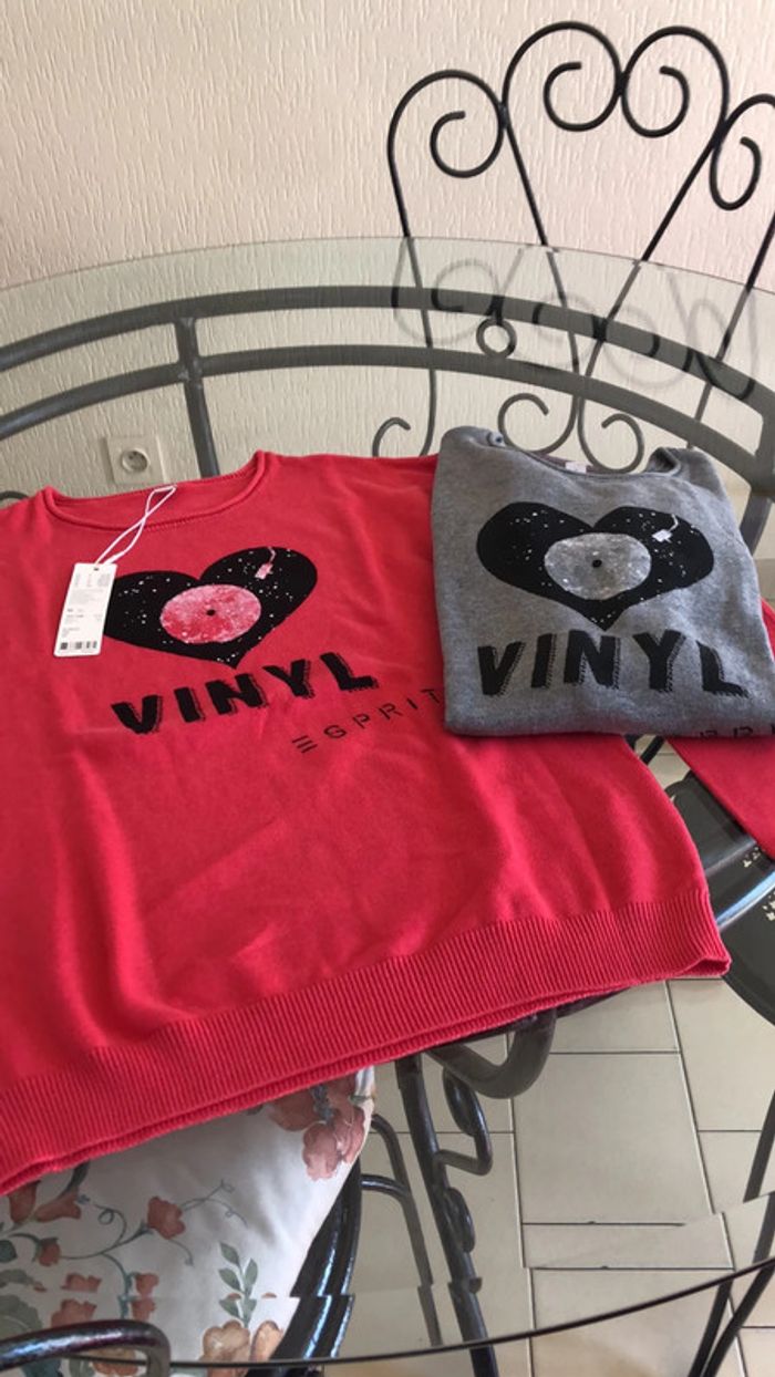 2 pulls Esprit M rouge clair neuf et gris - photo numéro 1