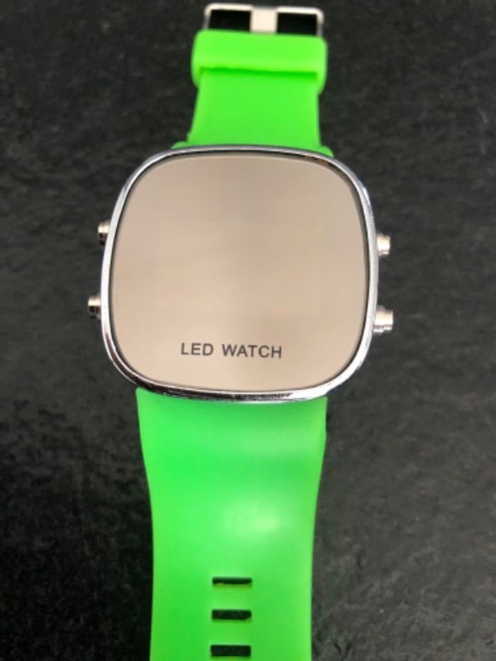 Jolie montre fantaisie , bracelet vert style caoutchouc. Reste à changer la pile