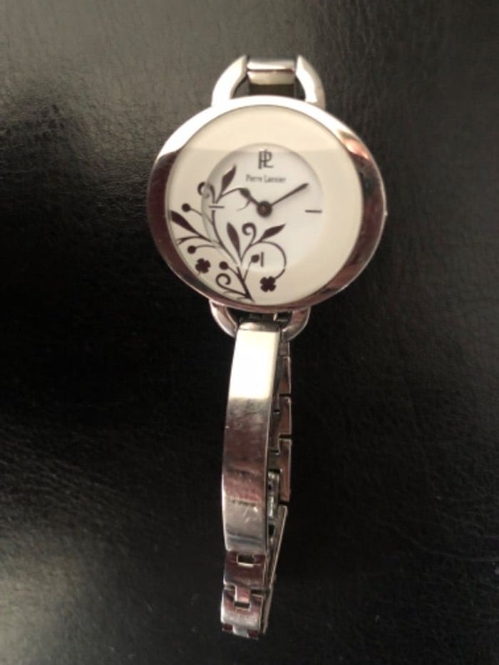 Jolie montre Pierre Lannier, blanche et acier , résistante à l’eau . Prévoir de mettre une pile neuve