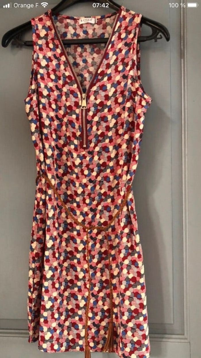 Très jolie robe colorée , légère et agréable à porter. Peut se porter avec ou sans ceinture , forme droite . Taille M/L. Longueur 65 cm et largeur sous les aisselles 46 cm. En coton