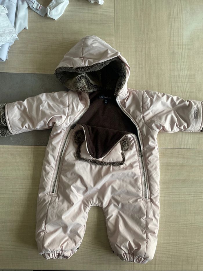Combi pilote rose poudré intérieur moumoute 3 mois Bon état Juste deux petits accros sur la poche du devant voir dernière photo