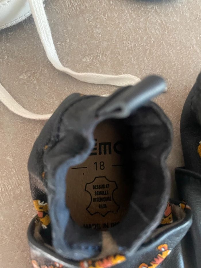 Lot chaussures bébé garçon Chaussons cuir GÉMO taille 18 Chaussons vert (paraissent gris sur la photo mais c’est à cause de la luminosité) quasiment pas servi taille 3/6 mois Chaussons jeans Obaibi taille 1/6 mois, la semelle intérieure a bougé mais l’extérieur est comme neuf