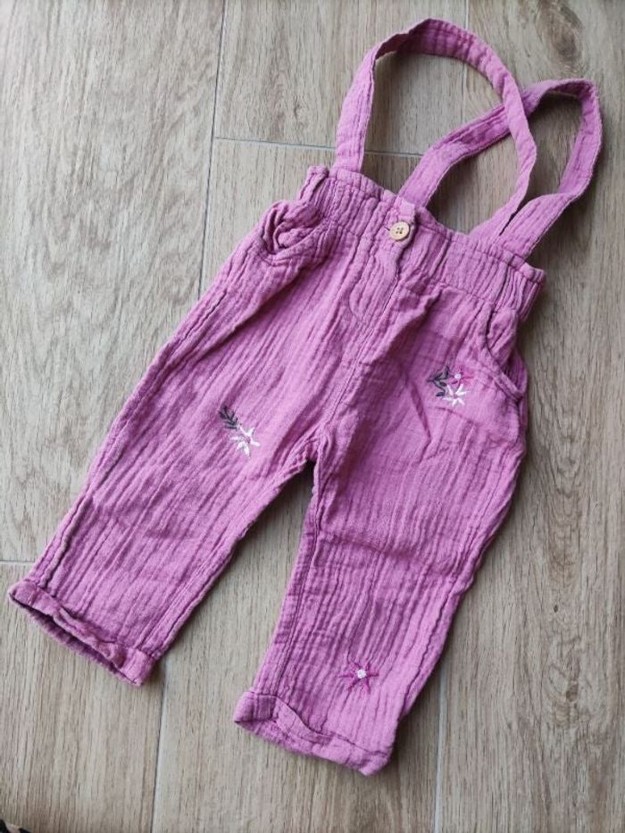 Pantalon fushia brodé fleurs à bretelles Tape à l'oeil 18 mois