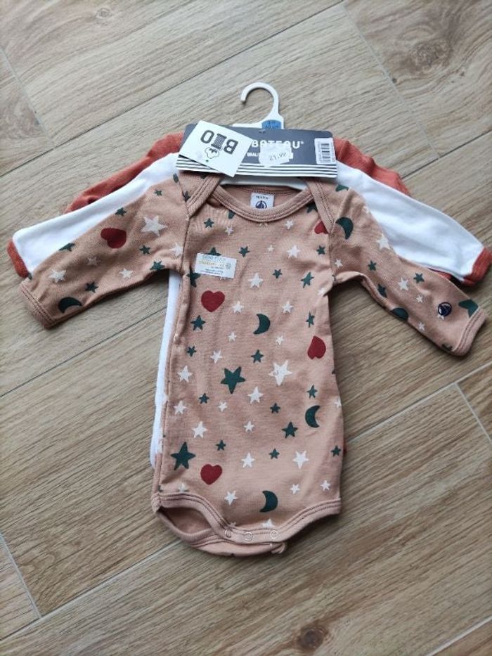Lot 3 bodies manches longues Petit Bateau 3 mois