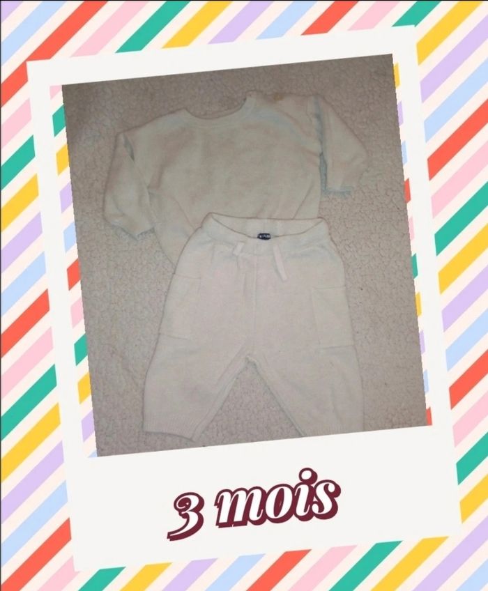 Pantalon et pull beige/crème taille 3 mois 60 cm tbe Couleur crème #sandrinetaille36mois