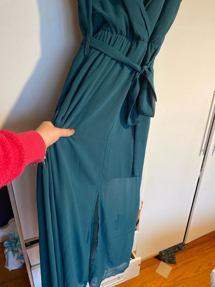 Taille 40/42 mais taille grand Robe verte sapin Longue et courte en dessous Fendu Légère Matière au top
