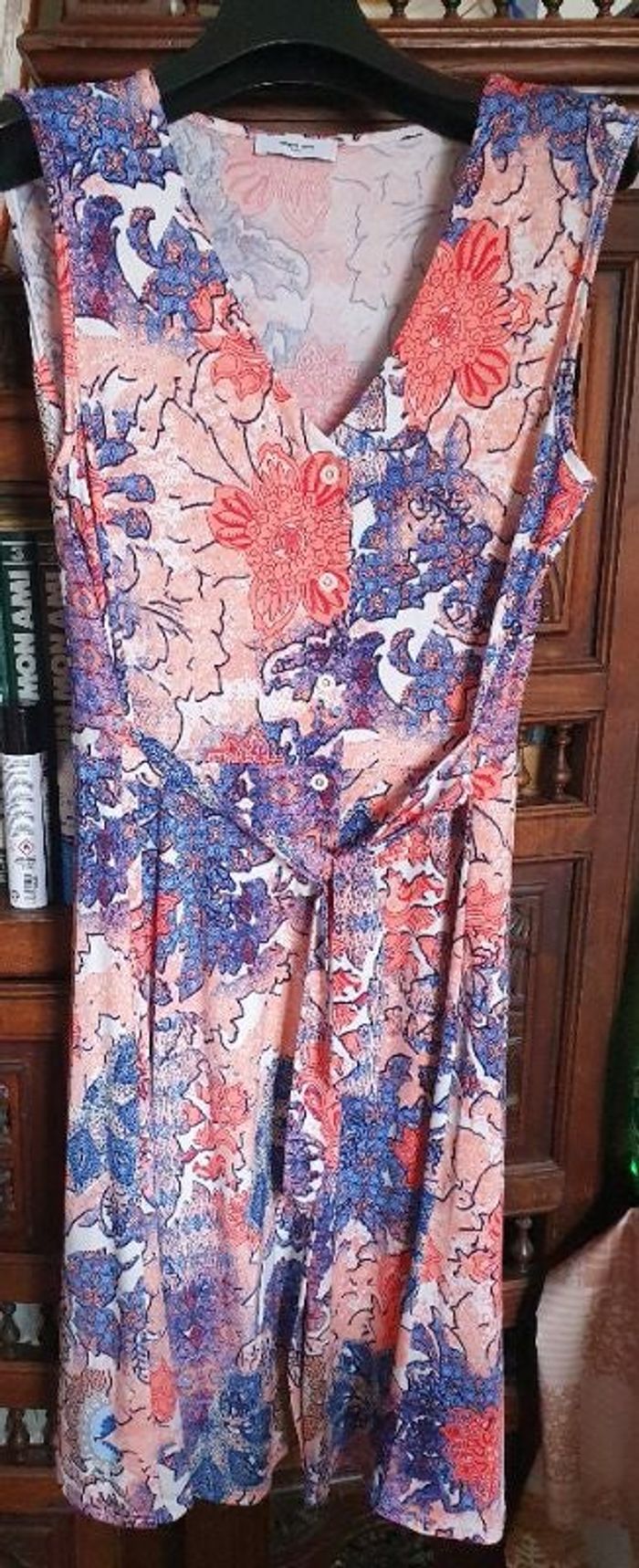 Taille 3 tenir compte des dimensions Dimensions epaules prise dans le dos 37 cm Largeur prise sous les bras aisselles à aisselles 47 cm Longueur totale prise sous les bras au bas 77 cm environ Et la longueur prise sous les bras à la taille 18 cm Elle ne s'ouvre pas devant bouton décoratif Voir les photos très fluide non doublé La ceinture peu devant ou à l arrière