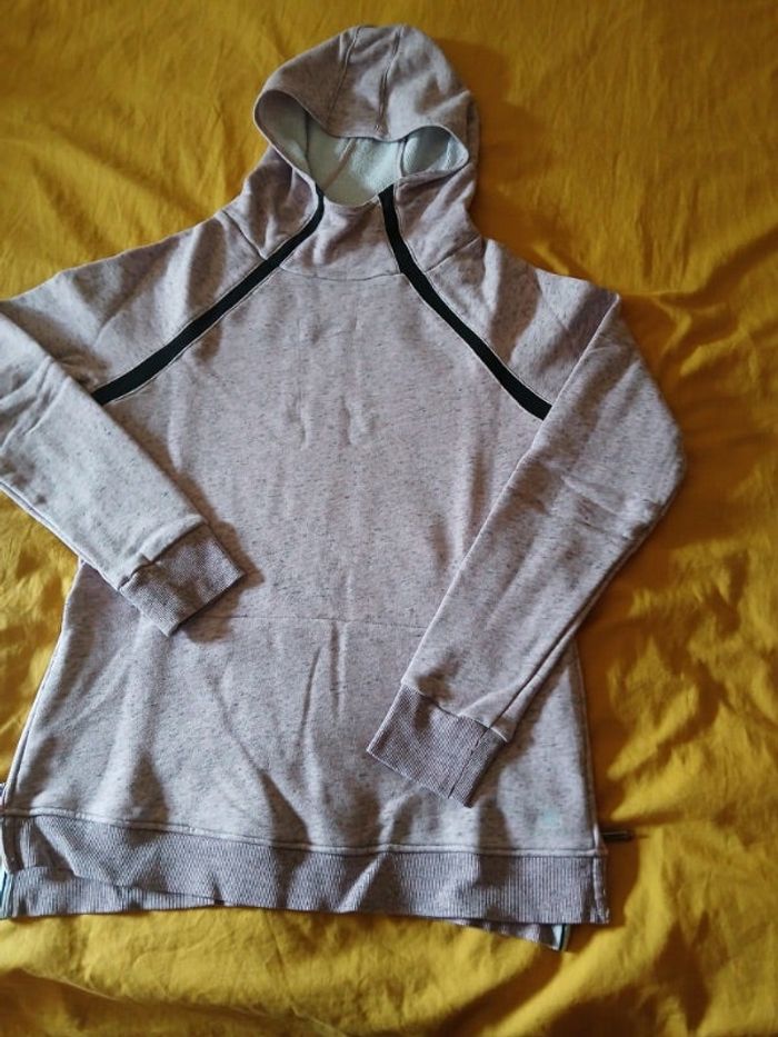 Sweat avec capuche Fermeture éclairs sur le côté Couleur rose moucheté gris Taille S