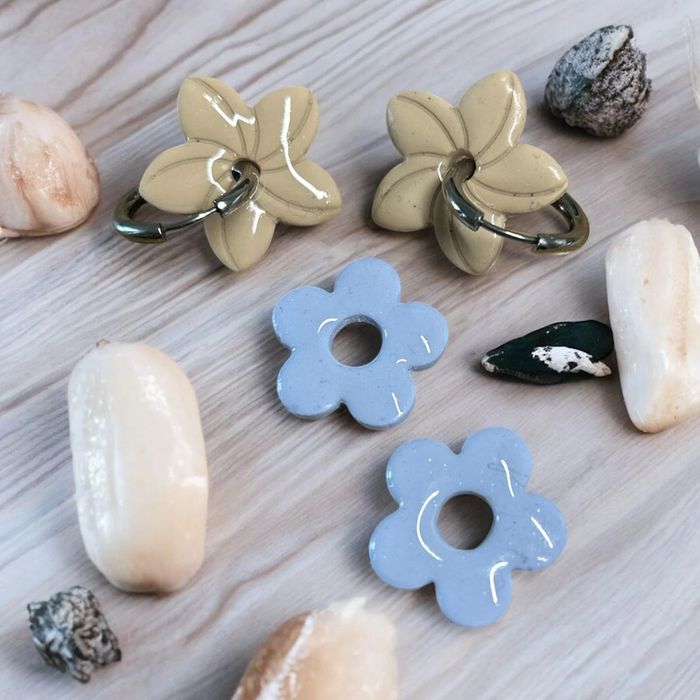 Deux. Paires de pompiers interchangeables en argile, polymère ou couverts, de résine, plus une paire de créoles en acier, inoxydable lot dissociable.