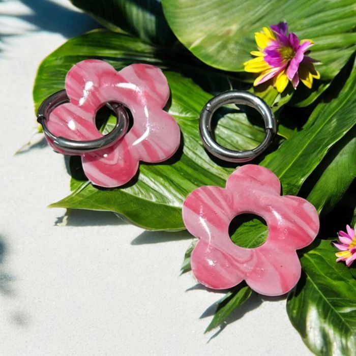 Pampilles interchangeables 2,5 cm fleur dégradé de rose Créole en acier inoxydable