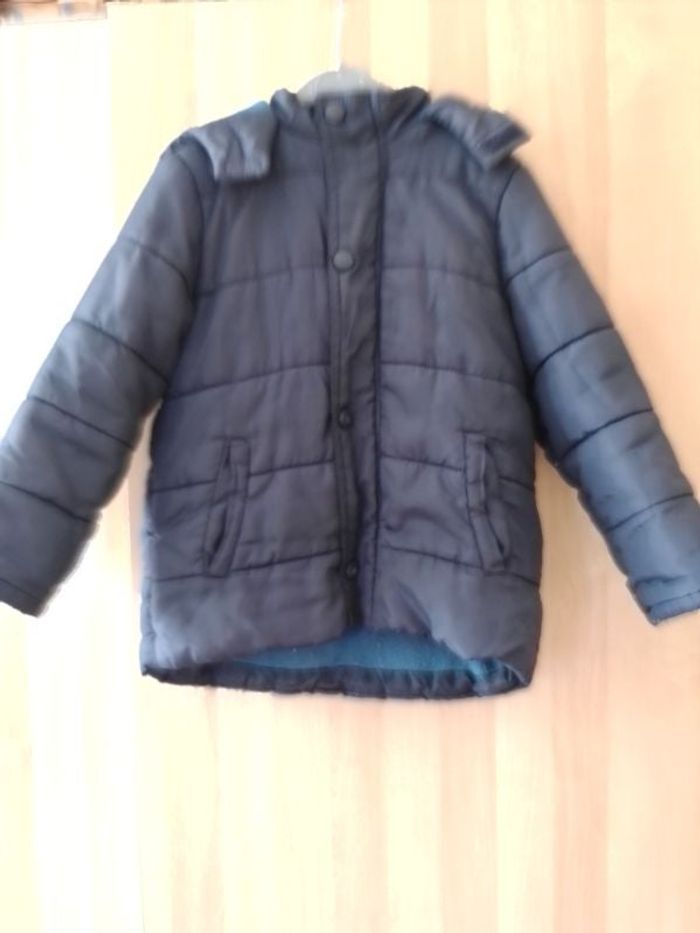 Doudoune garçon doublé polaire avec capuche Couleur bleu marine Taille 3 ans En bon état juste quelques bouloches sur la doublure polaire.