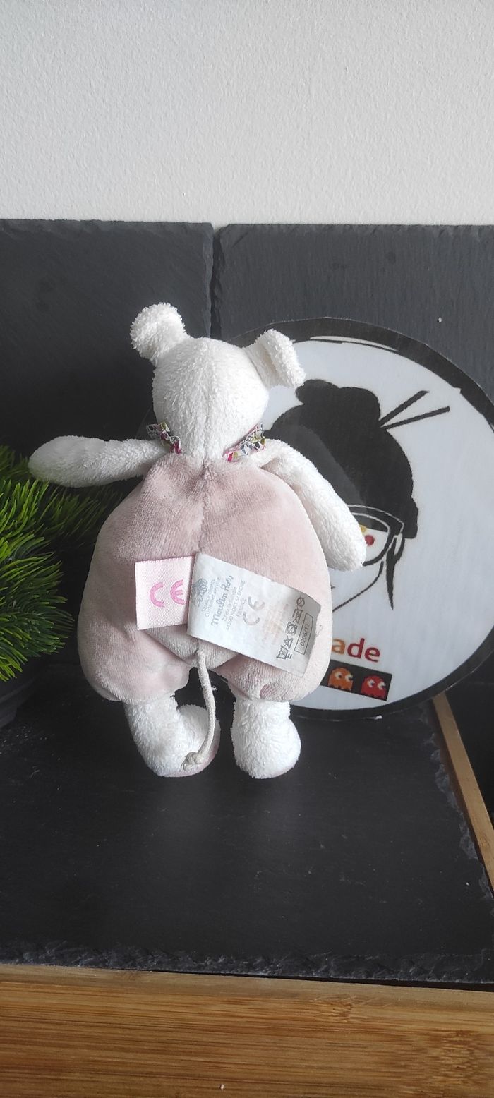Peluche souris rose blanc Myrtille et Capucine doudou grelot Mouli Roty Fleur - photo numéro 2