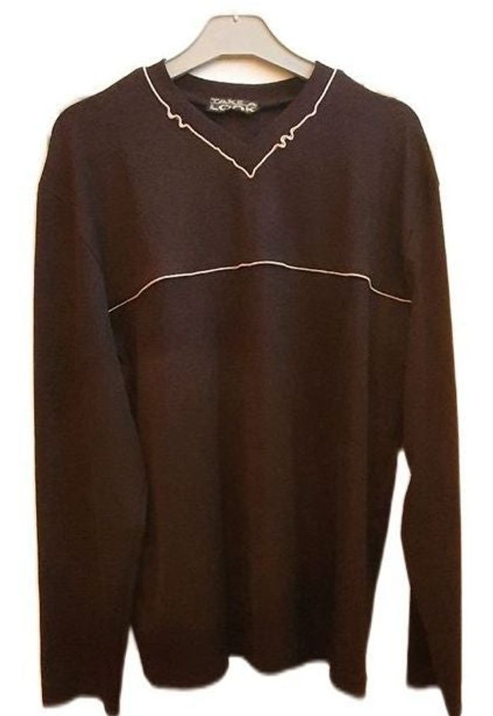 T-shirt noir, col V - Taille L T-shirt manches longues col V. Finitions fantaisie. Tissu indéfroissable, doux et frais. Très agréable à porter. Marque : Take A Look. État comme neuf, hormis l'étiquette de la marque abîmée.