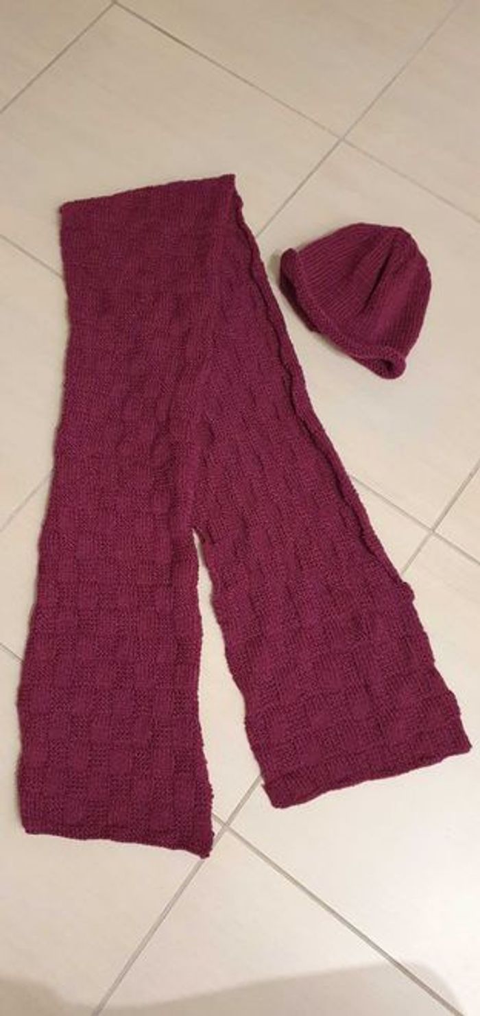 Ensemble écharpe et bonnet tricotés Grande écharpe (longueur 195 cm) et son bonnet. Ces articles ont été tricotés à la main (avec amour :-) ). Très bon état.