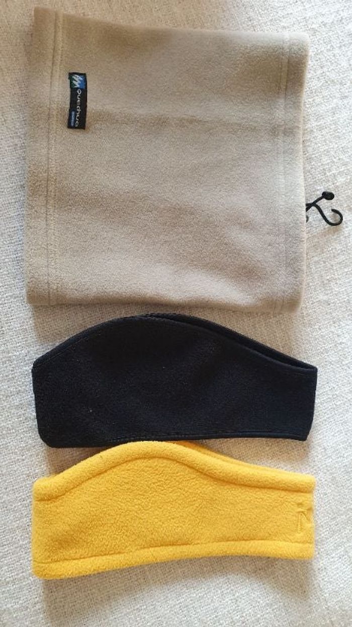 Ski : protections froid cou et oreilles Quechua Protége oreille et tour de cou en fibre polaire . Prix à l'unité 4 €. Nota : le protège oreille jaune a été vendu