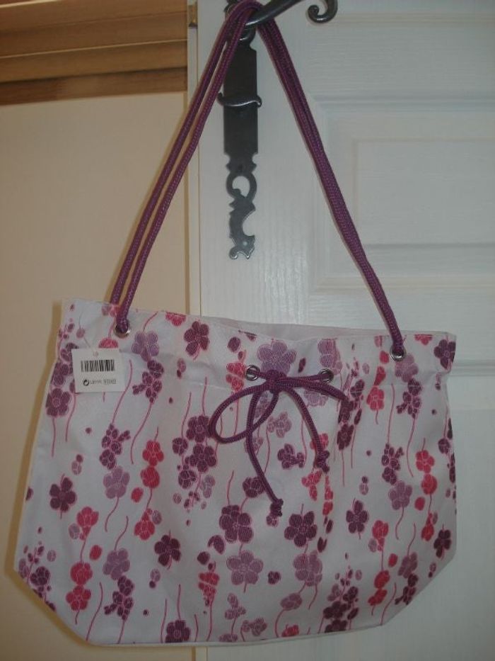 Sac de plage Joli sac en matière synthétique, lavable. Idéal pour la plage. Cordon de serrage. NEUF, JAMAIS UTILISE. Encore étiqueté. 1 face à motif, 1 face unie blanche. Dimensions : 40 x 28 x 16. Longueur des anses : + 28 cm de haut