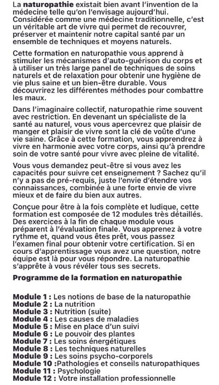 Formation complète en naturopathie . Valeur 590€ . Vendue 85€ sans les lutins si vous les voulez avec ça sera 100€ merci . Tous les volumes sont bien présents mais les photos étant limitées à 10 je n’ai pas pu les mettre. Je peux vous envoyer les photos en mp si vous êtes intéressé(e).